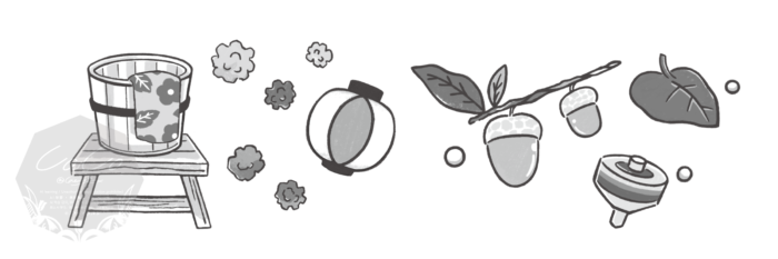 ミニピアノの周りにジブリをイメージするモチーフをたくさん散りばめました。